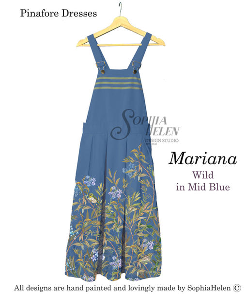 We hope that you will love each moment of wearing your new SophiaHelen pinafore. We hand painted each petal and each leaf of these fabric designs to bring you clothing and decor with character. Made with love, by women, for women.